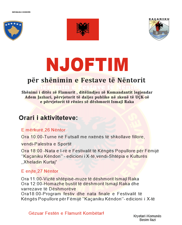Shënimi i ditës së Flamurit , ditëlindjes së Komandantit legjendar Adem Jashari, përvjetorit të daljes publike në skenë të UÇK-së